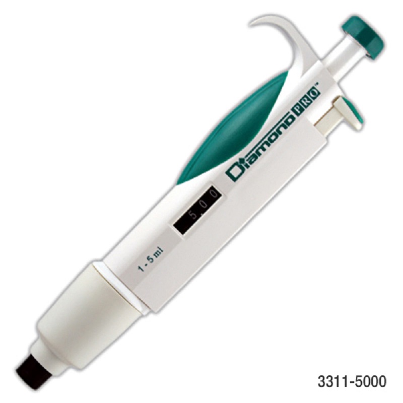 Globe Scientific Part Number 3311-5000, Pipette, Diamond PRO, Adjustable Volume, 1000 – 5000uL (1-5mL), Light Green, 1 Per Case