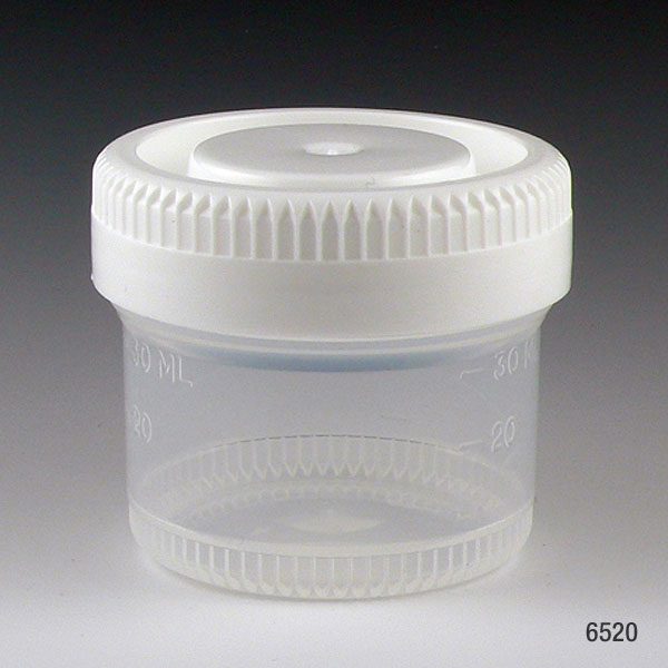 Globe Scientific Part Number 6520, Container: Tite-Rite, 40mL (1.34oz), PP, 48mm Opening, Graduated, with Separate White Screwcap, 600 Per Case